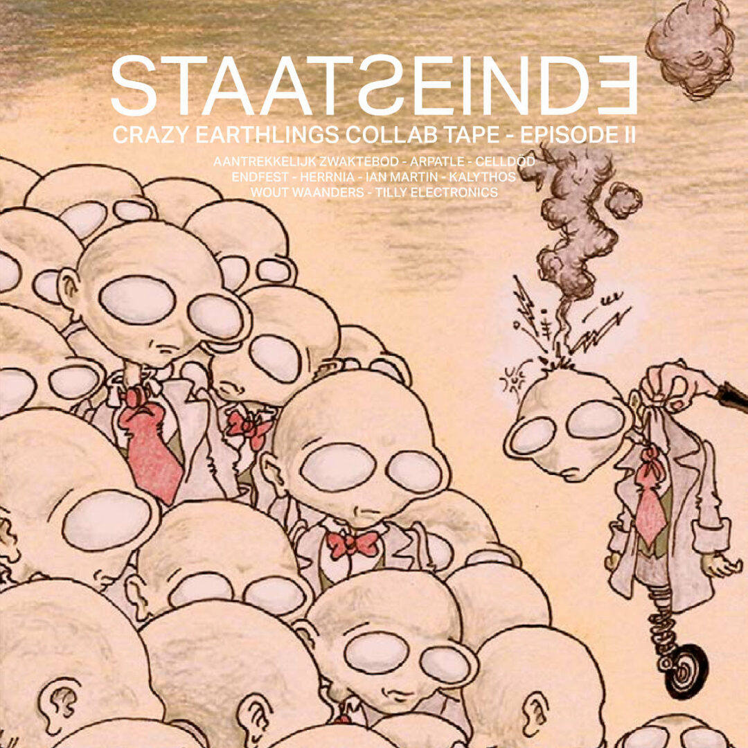 Na Crazy Earthlings Collab Tape Episode I was de komst van Episode II geen verrassing, maar toch verliep het voor Staatseinde anders dan verwacht: “Zwaar geïnfecteerd door aardse beslommeringen duurde het langer dan verwacht en die aardse perikelen hebben echter een bijzondere stempel gedrukt op de cassette. Het contrast tussen de dystopische realiteit en ongedwongen prachtige ontmoetingen vormden de ideale voedingsbodem. Wij – Staatseinde en de gekke aardlingen – presenteren u de 2de editie van onze collaborative cassette. Crazy Earthlings Collab Tape – Episode II is een samenwerking tussen Staatseinde en bevriende artiesten uit Nederland, Zweden, België en Duitsland die elkaar in het afgelopen decennium hebben ontmoet. De samenwerkingen konden tussen de lockdowns door fysiek plaatsvinden, waarbij spontane jamsessies voor een organisch geheel binnen de nummers zorgden die daarna tot compacte composities werden teruggebracht en geproducet. Door de veelzijdigheid van de verschillende artiesten is een afwisselend edoch coherent geheel ontstaan”, legt de band uit.