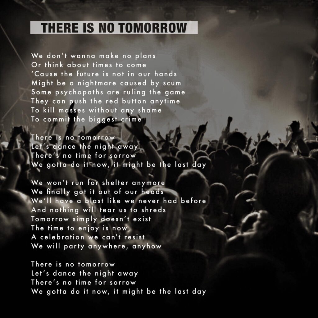 Hoewel de titel There Is No Tomorrow weinig toekomst belooft… Zoek nu dus alvast een onderkomen, vraag ergens op een goeie plek asiel aan, want een aanval is in aantocht.