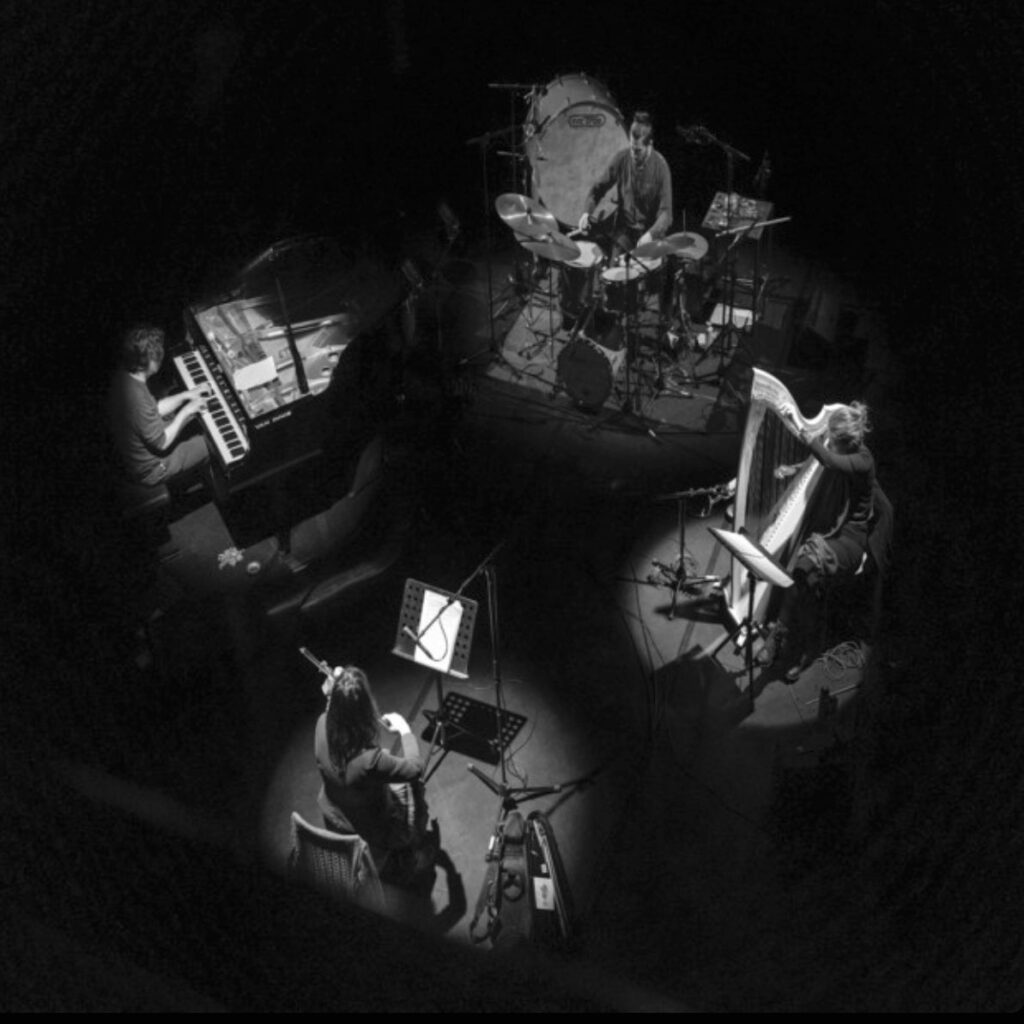 Weinig, maar dat is dus precies wat FNUSSJEN, de band rond drummer Nicolas Chkifi met Ann Eysermans aan de harp, Christian Mendoza aan de piano en Ananta Roosens op viool, tracht te doen.