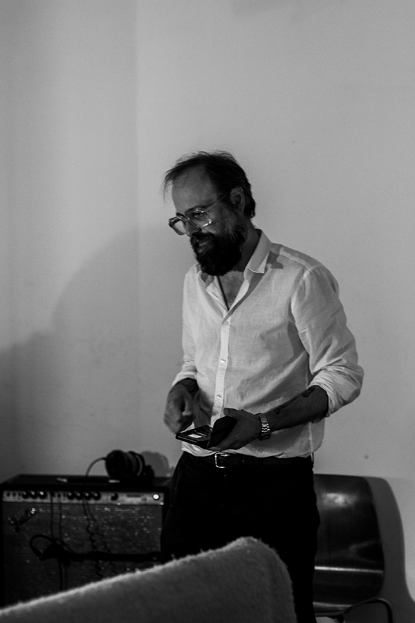 Die ochtend in Studio Caporal: opstellen en soundchecken. Bert Huysentruyt op drums. Nicolas Rombouts op bas. Geert Hellings op gitaar. Een frisse Matt Watts heeft z’n Gullit meegebracht, een handgebouwde gitaar.