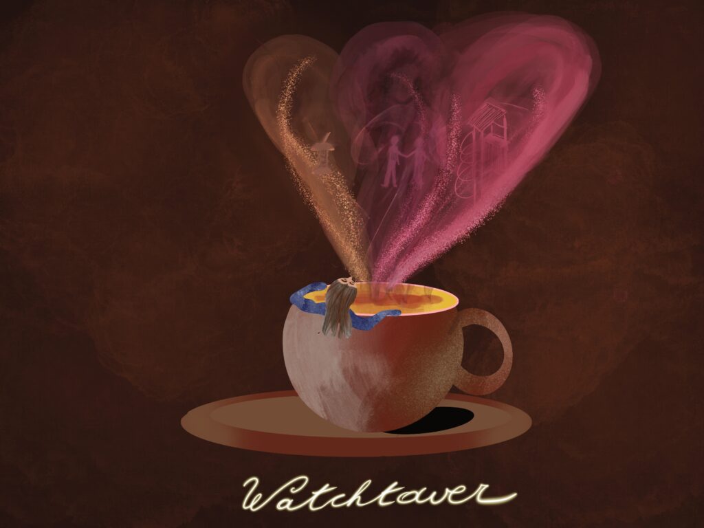 En ook in de videoclip (die er binnenkort aan komt), is er plaats voor romantiek, met appels en klokhuizen in de hoofdrol. Maar niet zomaar, want daar hoort een liefdesverhaal bij. Watchtower gaat over iemand waar Pieter ooit verliefd op was. Op de uitkijktoren in de Blaarmeersen gooiden ze samen ooit twee klokhuizen naar beneden en deden elk een wens, alsof het de Trevi-fontein in Rome was.