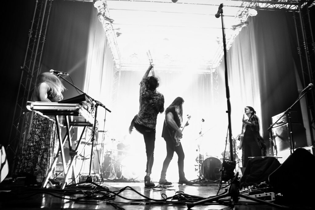 We kijken en luisteren eerst naar 5 minuten Euphrate. We zien Grégoire met drummers Lukas Melville en Michael Thiel, basgitarist Stéphane Fedele en twee zangeressen, Anaïs Elba, die ook de keyboards bespeelt en een zekere Laura Palmer uit Twin Peaks.